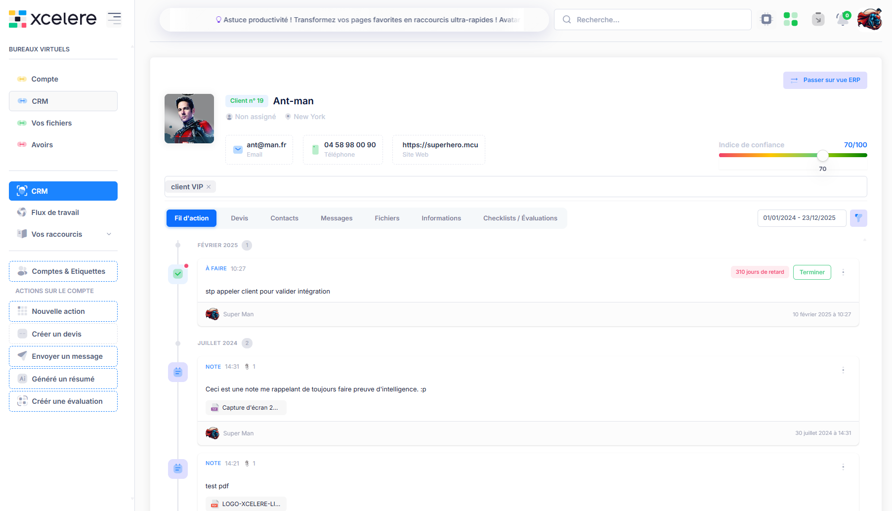 xcelere centralise toute votre gestion dans une seule plateforme. Fini les ressaisies, les exports Excel et les outils qui ne se parlent pas.