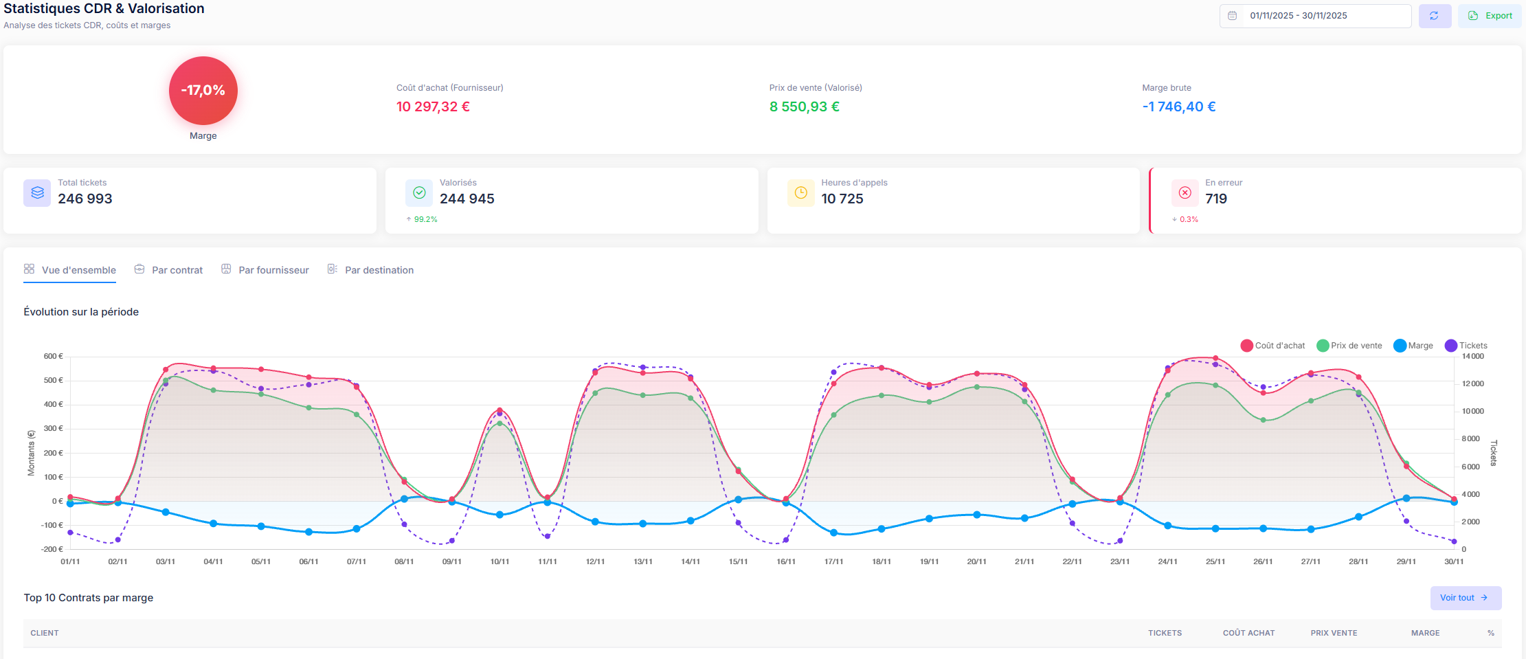 Fort de 17 ans d'expérience dans le secteur des télécommunications, xcelere intègre nativement un moteur de rating pour la valorisation des tickets CDR/IPDR.
